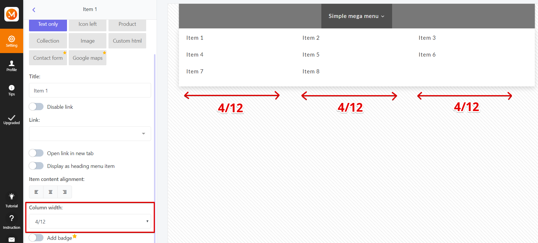 For example, we have a mega menu with 5 products sorted horizontally. Follow these steps below to make the last 3 products listed vertically.