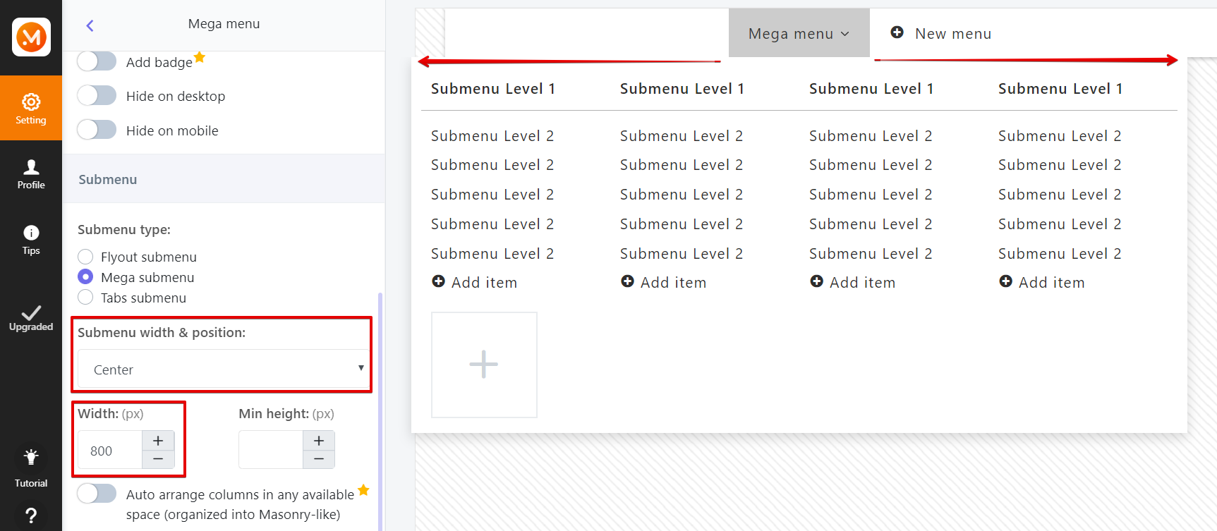 1. Style Step 2: Add & Design > Style All settings in this section apply globally to all menu items. Animation *Available in Premium plan only. There are 4 animations to appear submenu: fade in, shift up, flip in, zoom in. Note: select "none" if ...